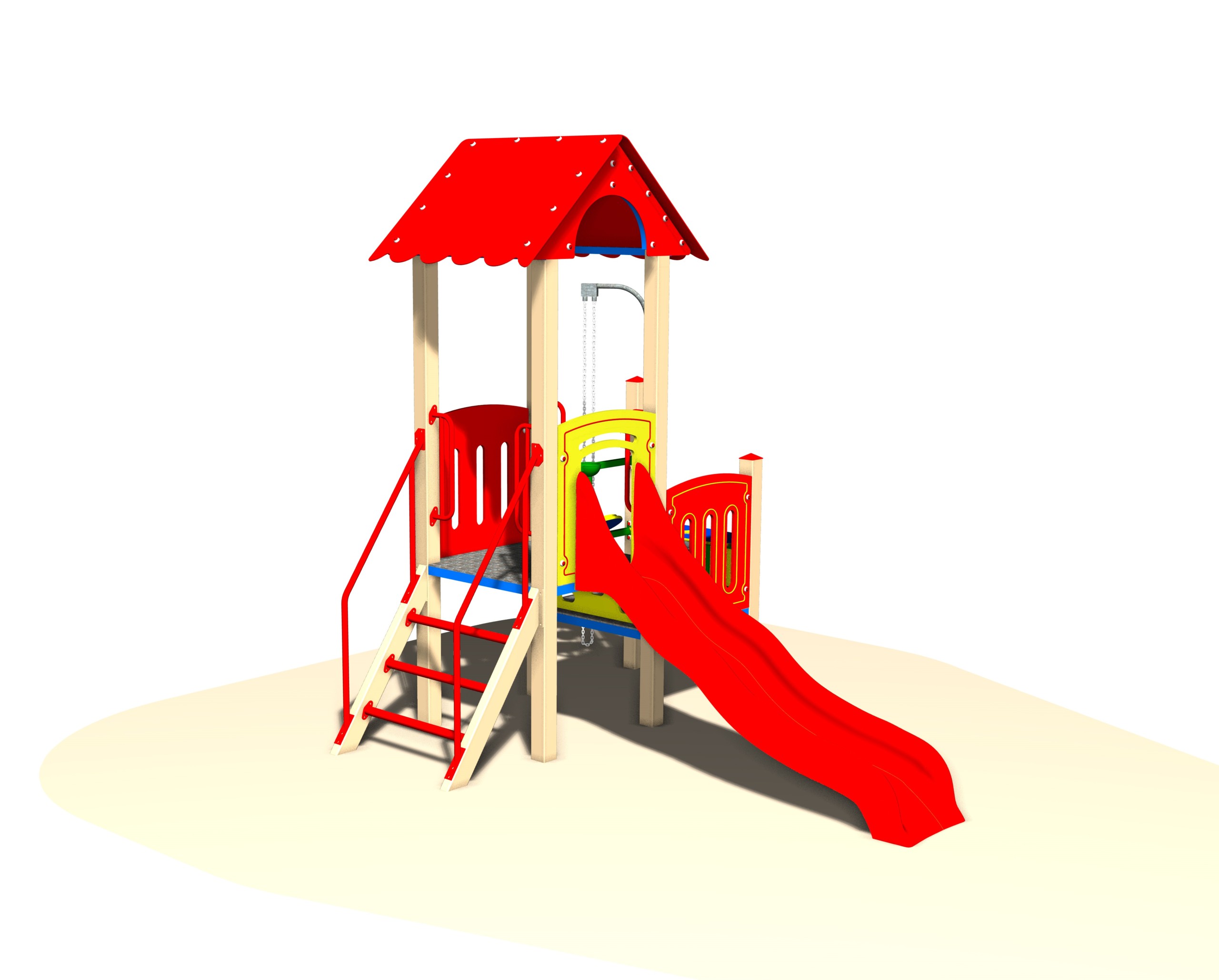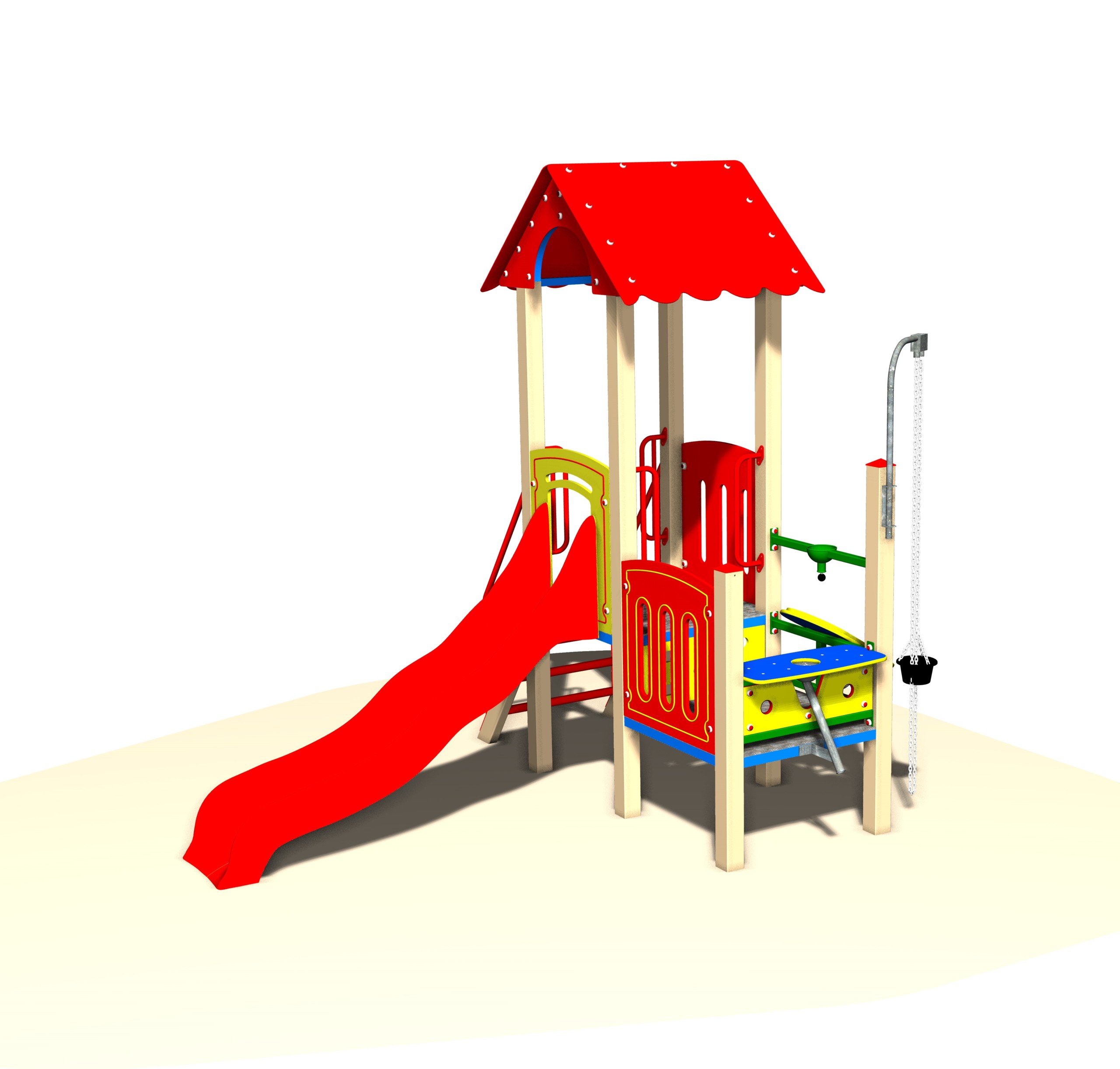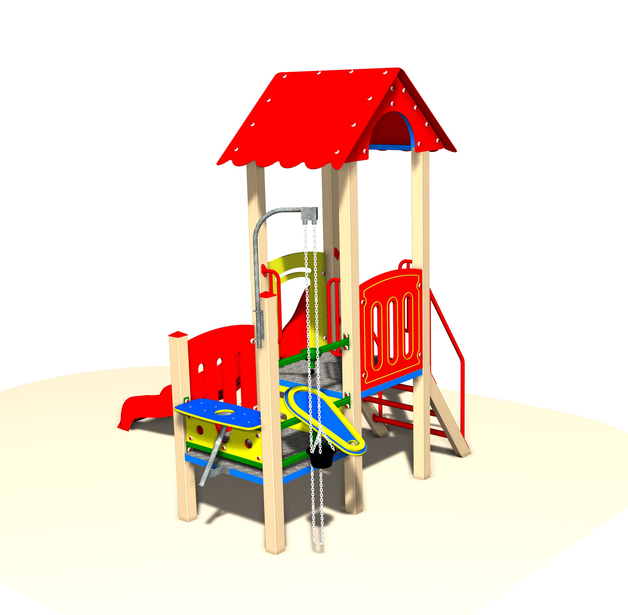 Detské ihrisko FLORA F57C je kompaktná zostava, ktorá kombinuje pohybové aktivity s kreatívnou hrou. Ponúka šmykľavku, rebrík so zábradlím a hrací prvok na piesok, čo podporuje motoriku, fantáziu i sociálnu interakciu detí.