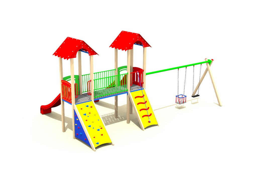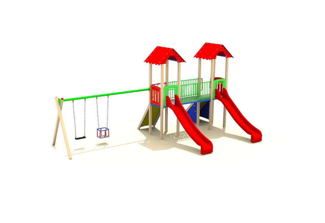 Detské ihrisko FLORA F88 je moderná zostava, ktorá ponúka kombináciu sklzov, lezenie aj hojdanie. Vďaka dvom vežiam so šmykľavkami, lezeckej stene, šplhacej rampe a dvojitým hojdačkám si deti užijú zábavu aj pohyb na čerstvom vzduchu.