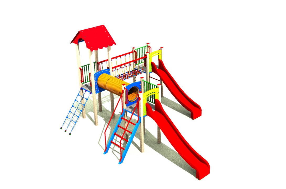 Detské ihrisko FLORA F89 je atraktívna herná zostava, ktorá kombinuje šmykľavky, šplhaciu sieť, lanový most aj preliezací tunel. Ponúka deťom širokú škálu možností, ako rozvíjať pohybové zručnosti, koordináciu a fantáziu pri hre na čerstvom vzduchu.